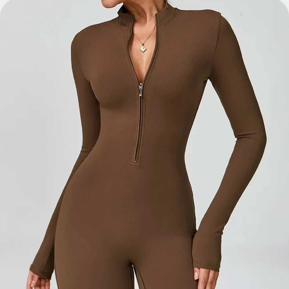 Designed for the modern yogi, this flared yoga jumpsuit combines functional elegance with unrestricted movement. The wide-leg silhouette offers a flattering fit while allowing full range of motion through poses and transitions. Crafted from breathable, moisture-wicking fabric, it keeps you comfortable during intense practice or casual wear. The integrated support ensures confidence through every asana, while the versatile design transitions seamlessly from studio to street. Perfect for practitioners who refuse to compromise on style or performance.